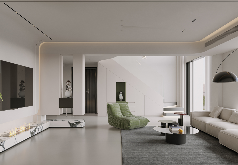 現代簡約風格裝修空間開敞、內外也很通透,而且在空間平面設計中不受承重墻限制,給人一種放松自由的感覺。